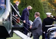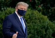 دونالد ترامپ در حالی که ماسک پوشیده بود با پای خود سوار هلیکوپتر شد، ولی به پرسش خبرنگاران پاسخ نداد.
