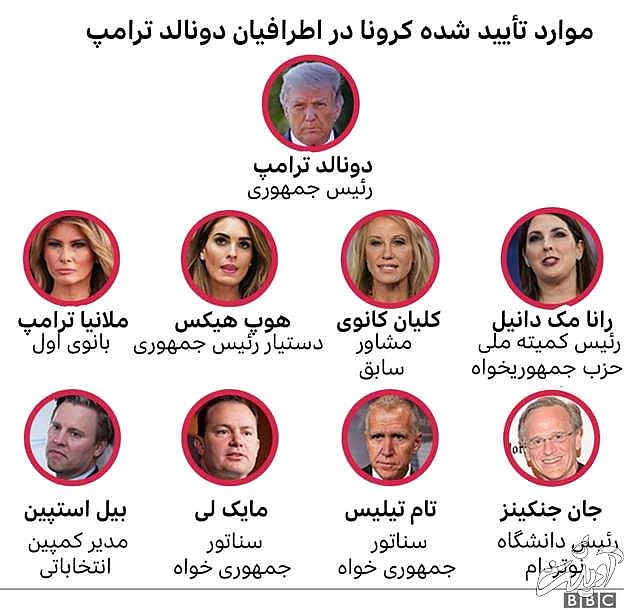 هوپ هیکس دستیار نزدیک آقای ترامپ - که ظاهرا ابتدا علائم بیماری در او ظاهر شد - بیل استپین مدیر کارزار انتخاباتی آقای ترامپ و کلیان کانوی مشاور سابق کاخ سفید هم مبتلا شده اند.