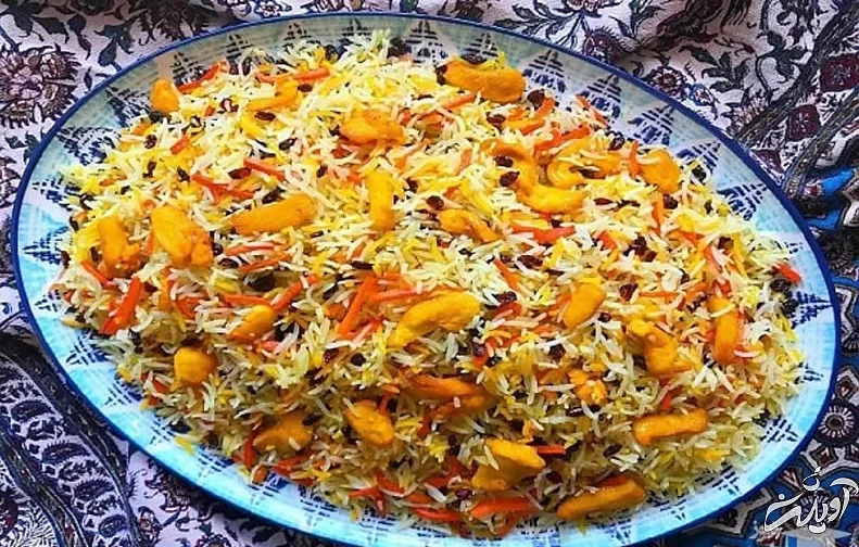 طرز تهیه پلو مخلوط با قلقلی مرغ و بادمجان