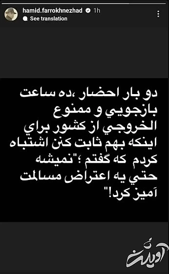 حمید فرخ نژاد از احضار، بازجویی و ممنوع الخروج شدنش خبر داد.