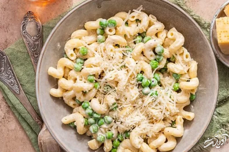 حدود ۳ دقیقه در حال هم زدن سس را درست کنید به قدری که غلیظ شود. پینر پارمزان را به آن اضافه کنید و به هم بزنید تا ذوب شود. آب لیموترش را به آن اضافه کرده و هم بزنید. حرارت را کم کنید تا پاستا آماده شود و هر از گاهی سس را هم بزنید. زمانی که سس به قوام لازم رسید پاستا را آبکش کرده و آن را همراه با نخود فرنگی (اختیاری) به سس اضافه کنید.