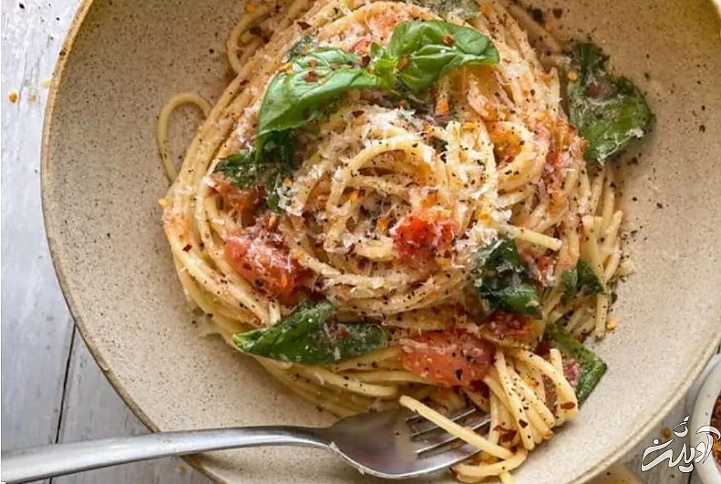 ۳-پاستای ریحان و گوجه فرنگی پخته نشده