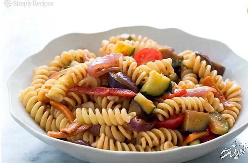 پیاز، هویج، کدو سبز، فلفل دلمهای و بادمجان سرخ شده و پاستا با سس مارینارا به سرعت تهیه میشود. این غذای مدیترانهای را میتوانید با یا بدون پنیر پارمزان میل کنید.